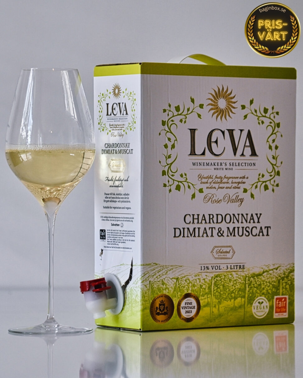 Leva Chardonnay Dimiat & Muscat 2023 är ett vitt vin från det vackra Trakiska låglandet i Bulgarien, framställt av den välrenommerade producenten Vinex Slavyantsi, belägen i den natursköna Rozova Dolina, även känd som Rosornas Dal. Detta aromatiska och fruktiga vin består av en välbalanserad blandning av 70% Chardonnay, 15% Dimiat och 15% Muscat. Chardonnay-druvan ger en friskhet och struktur till vinet, medan den inhemska Dimiat bidrar med subtila frukttoner, och Muscat förser det med sina karakteristiska aromatiska noter.